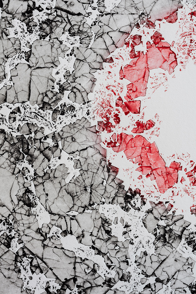 detail, glass edging on handmade paper